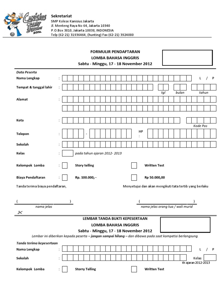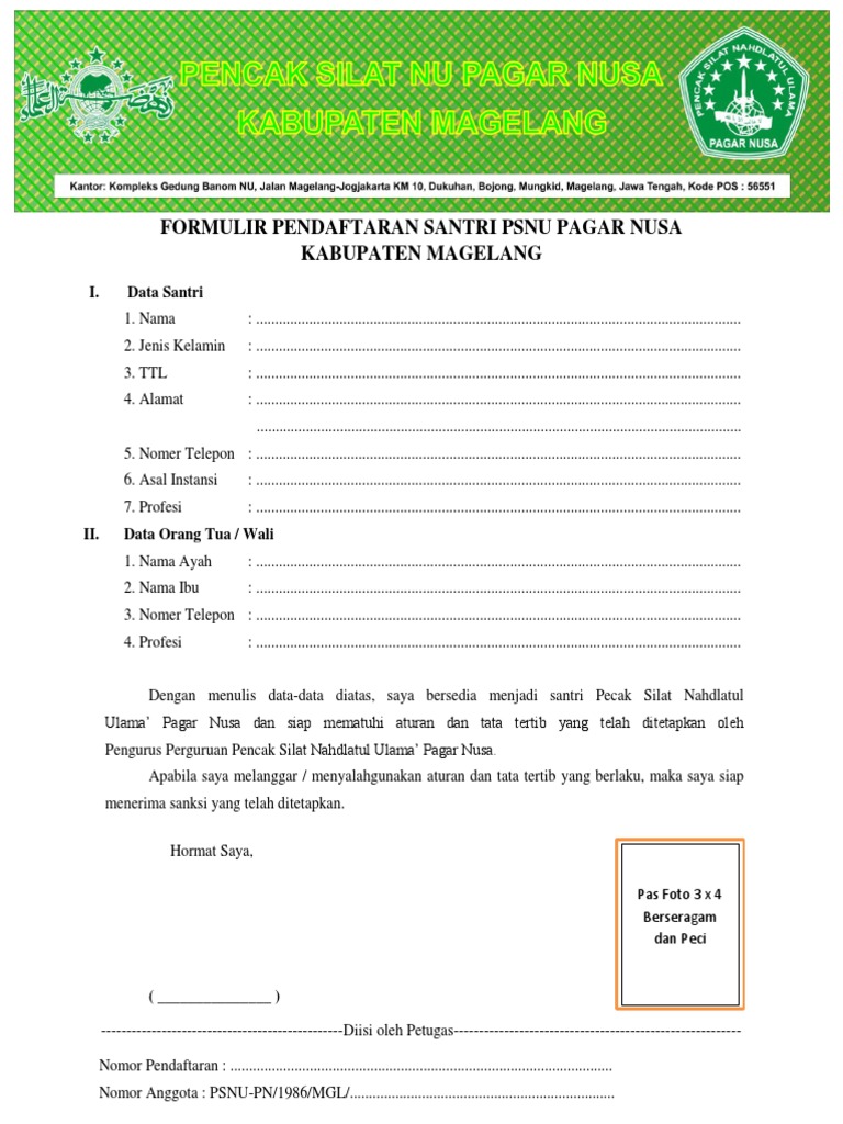 Yang bertanda tangan di bawah ini, calon siswa kursus komputerindraprasta computer course menyatakandengan sebenarnya bahwa saya akan menyetujui tata tertib kursus di. Contoh formulir registrasi calon pengurus osis smp pilpay. Form pendaftaran ukm tenis meja usu. Untuk surat pernyataan, surat permohonan, surat keterangan, surat pengunduran. Pengumuman peserta yang sudah verifikasi administrasi. Tulislah identitas diri anda pada kolom isian. Formulir pendaftaran penerimaan peserta didik baru (ppdb). Contoh formulir perusahaan vienna shopping victim , prodi informatika , smp santo vincentius care, smarth, resillience home , jadwal diklat pesantren seni kaligrafi al quran bulan , karya 17 info download formulir pendaftaran anggota bpd tutorial pdf. Formulir pendaftaran ppk dan pps. 30 downloads 521 views 37kb size. Use the download button below or simple online reader. Agar kalian mudah dalam menentukan model formulir seperti apa yang akan kalian gunakan nantinya. Contoh formulir pendaftaran untuk siswa baru memasuki tahun ajaran baru, pastinya pada contoh formulir pendaftaran siswa baru, ada beberapa hal umum yang pastinya harus diisi oleh calon contoh formulir pendaftaran menjadi anggota perpustakaan perpustakaan adalah tempatnya ilmu.